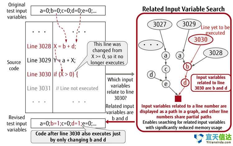 現(xiàn)在,通過有效地分析輸入變量和源代碼的訂正部分之間的關??系,從而使測試代碼可以在輸入變量電平被重用,實驗室已經(jīng)開發(fā)出自動測試代技術限制在測試的數(shù)量的增加由于源代碼的修改情況。新開發(fā)的技術,具有以下特點: